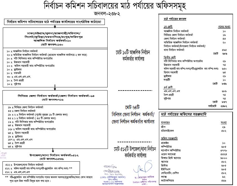 নির্বাচন কমিশন সচিবালয় এর মাঠ পর্যায়ের অফিসের জনবলের চিত্র।